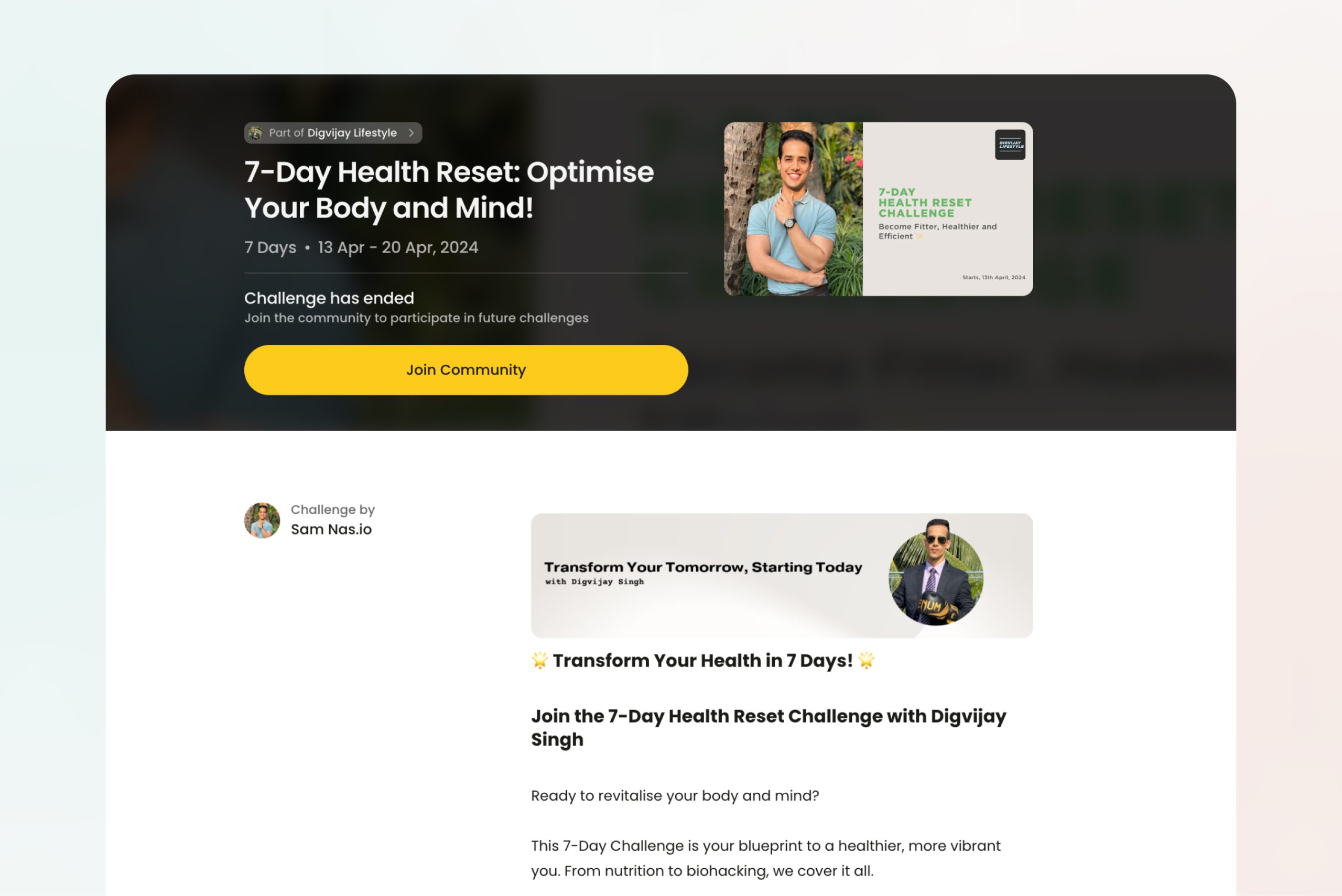 The Digvijay Lifestyle community created the “7-Day Health Reset: Optimise Your Body and Mind!” challenge for an INR 499 participation fee. They helped their members set sustainable fitness goals depending on their health status.