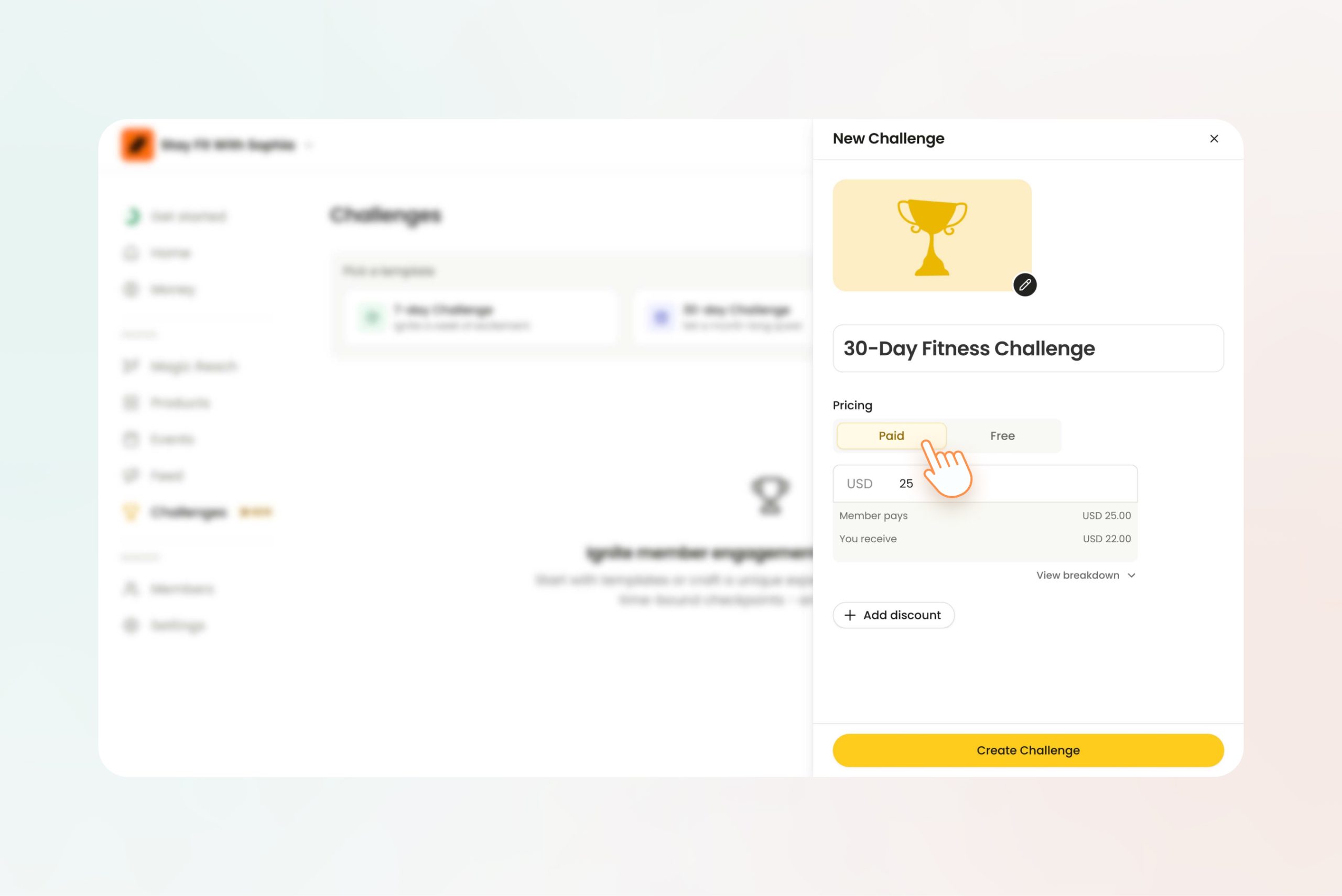 4. Name your challenge and set the price. Paid challenges appear to be more effective in motivating members to finish what they’ve started.