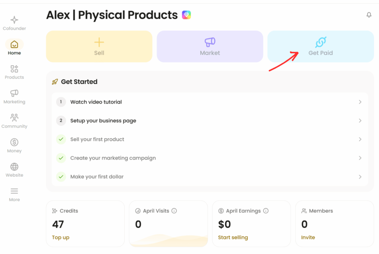 When you’re ready to sell—say, a 1-on-1 coaching session—just go to the Nas.com dashboard, open the “Get Paid” tab and create a payment link with zero fees.